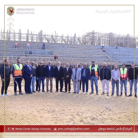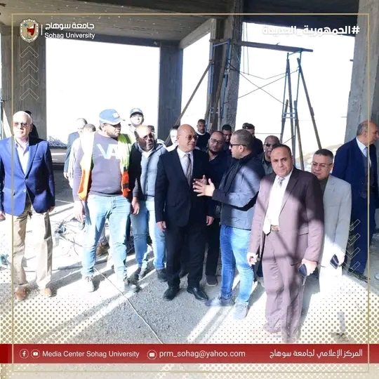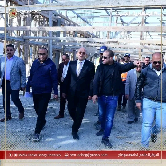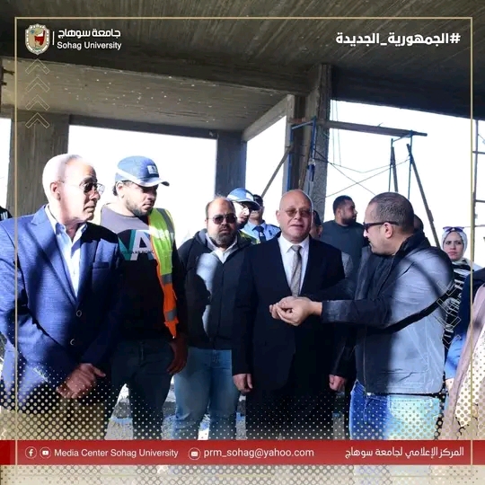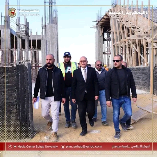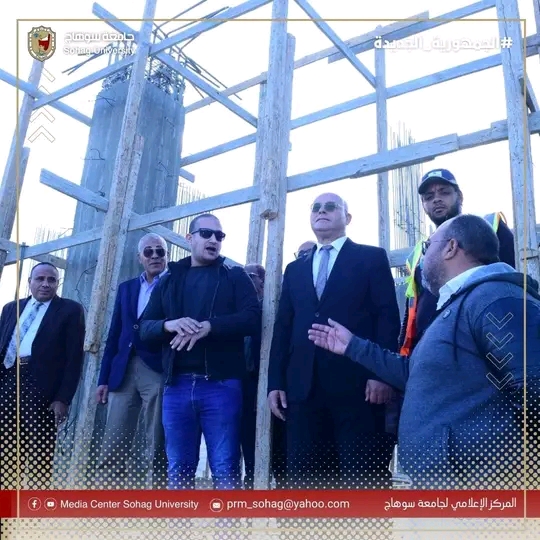 يواصل الدكتور حسان النعماني رئيس جامعة سوهاج جولاته التفقدية لمتابعة الأعمال الإنشائية الخاصة بمشروع، بصالة الألعاب الرياضية الدولية “الصالة المغطاة”الجاري تنفيذها بالحرم الجامعي الجديد، يرافقه الدكتور عبدالناصر يس والدكتور خالد عمران نواب رئيس الجامعة، المحاسب أشرف القاضي امين عام الجامعة، المهندس حسين محمدين مدير الإدارة الهندسية بالجامعة، والمهندس محمد لطفي المدير التنفيذي للمشروع، واللواء طارق حافظ مدير الامن الجامعي.