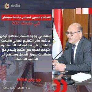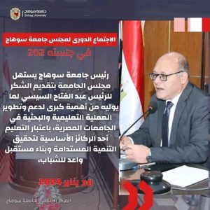 الدكتور حسان النعماني رئيس جامعة سوهاج، يترأس الجلسة الشهرية لمجلس الجامعة رقم ٢٠٢ لشهر يناير لعام ٢٠٢٤م.
