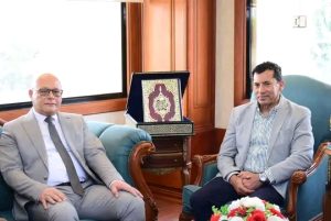 استقبل اللواء طارق الفقي محافظ سوهاج والدكتور حسان النعماني رئيس جامعة سوهاج الدكتور أشرف صبحي وزير الشباب والرياضة بديوان عام المحافظة، صباح اليوم عقب وصوله للقيام بجولة تفقدية لعدد من المنشآت الشبابية والرياضية بسوهاج، وافتتاح أعمال التطوير الملحقة بها، والتعرف على احتياجاتها وتوفيرها.