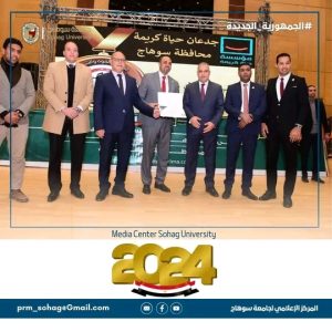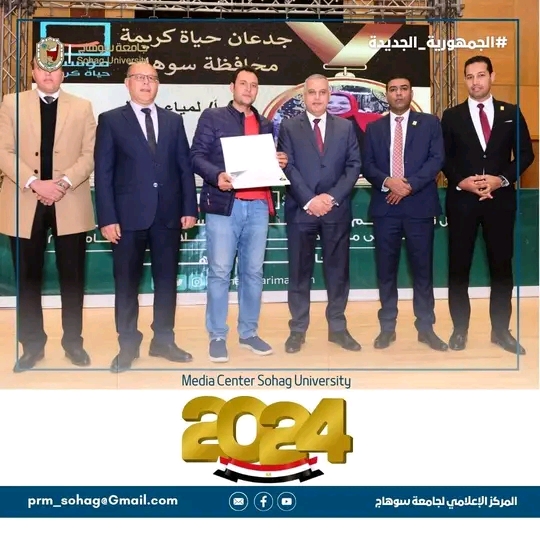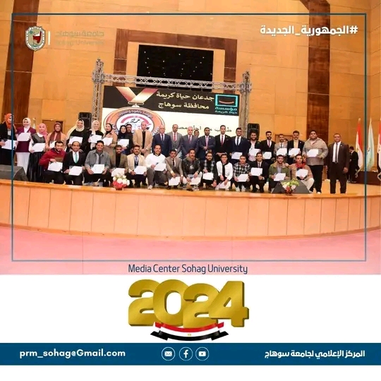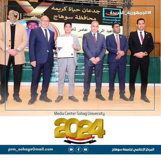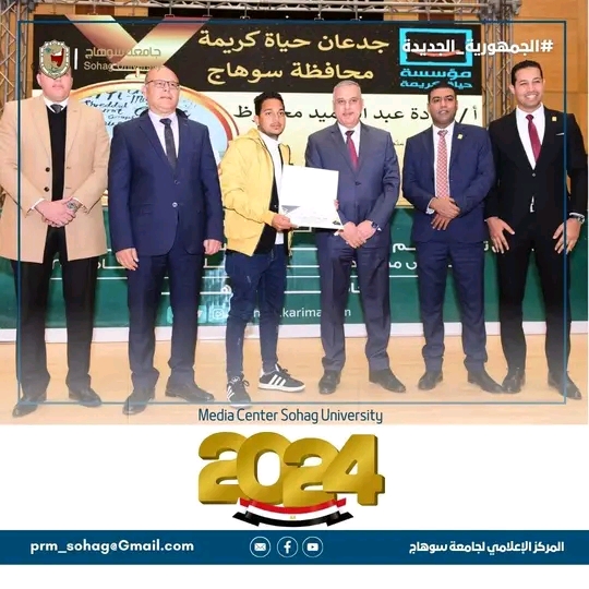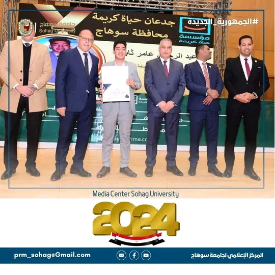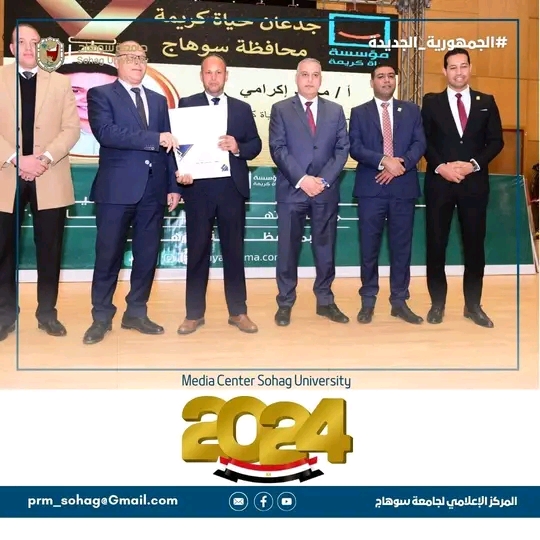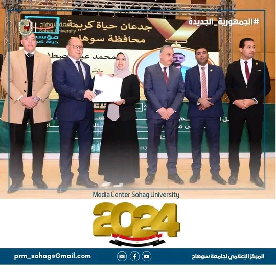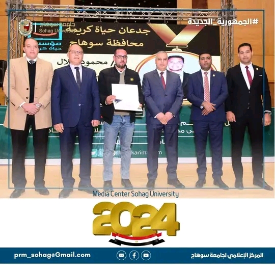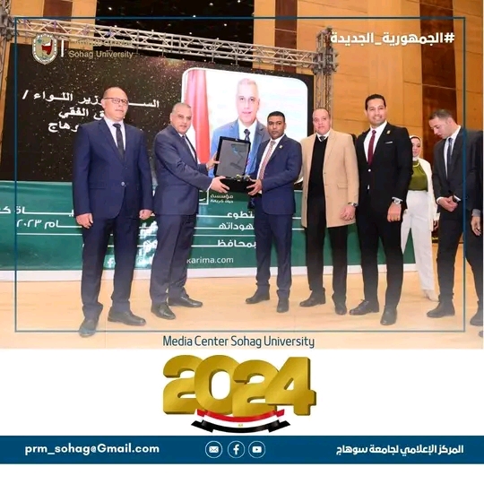 كرم اللواء طارق الفقي محافظ سوهاج و الدكتور حسان النعماني رئيس جامعة سوهاج و العقيد محمد كمال مدير مكتب حياه كريمة بالمحافظة، متطوعي مؤسسة حياة كريمة بالمحافظة، تقديراً لمجهوداتهم خلال عام ٢٠٢٣م، وذلك خلال فعاليات الإحتفالية التي نظمتها مؤسسة حياة كريمة بالتعاون مع طلاب من أجل مصر بالجامعة، بحضور نائب المحافظ، نواب رئيس الجامعة، عمداء الكليات، رئيس أسرة طلاب من أجل مصر، وعدد من أعضاء هيئة التدريس والطلاب، ولفيف من القيادات التنفيذية والشعبية بالمحافظة وممثلي المجتمع المدني، بالمركز الدولي للمؤتمرات بالحرم الجامعي الجديد.