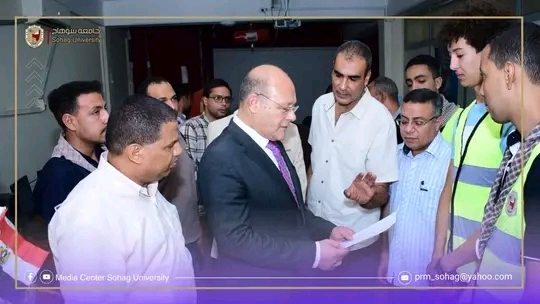 القائم بعمل رئيس جامعة سوهاج يتفقد أعمال التنسيق الإلكترونى بأول أيام المرحلة الأولى للثانوية العامة