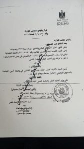 اصدر الدكتور مصطفى مدبولي رئيس مجلس الوزراء قرار رقم 2673 لسنة 2021 بتعيين المحاسب اشرف كامل احمد عبد الرحيم القاضي، في وظيفة امين الجامعه بالمستوى الوظيفي “العاليه” بجامعه سوهاج لمدة عام .
