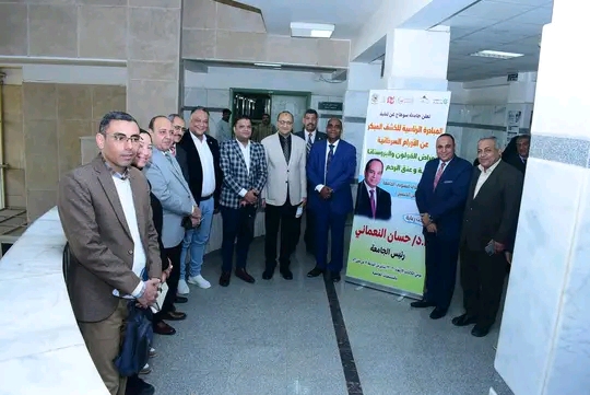 وأكد الدكتور حسان النعماني ان قطاع الصحة على رأس اولويات اهتمام الرئيس السيسي، حيث أطلق فخامته حزمة من المبادرات الصحية العاجلة لرفع كفاءة الخدمات المقدمة للمواطنين، و توفير خدمات علاجية بجودة عالية، مؤكداً علي انه تنفيذاً لتوجيهات القيادة السياسية فان إدارة الجامعة مستمرة في تنفيذ المبادرات الصحية المختلفة مجاناً لتخفيف العبء عن كاهل المرضي وزيادة نسب الشفاء، وذلك بالمستشفيات الجامعية والتي تخدم قطاعًا كبيرًا من المواطنين بالمحافظة والمحافظات المجاورة.