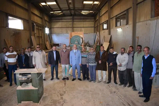 كما تابع رئيس الجامعة ايضاً سير العمل داخل ورشة النجارة والتي تقوم بتجهيز وصيانة الأثاثات المطلوبة من مكاتب ومكتبات وكراسي المعامل وكراسي محاضرات، وجميع متطلبات العملية التعليمية والجهاز الاداري.