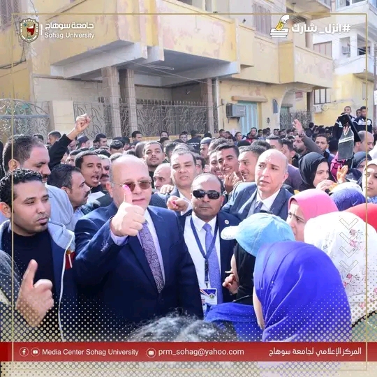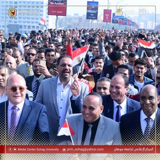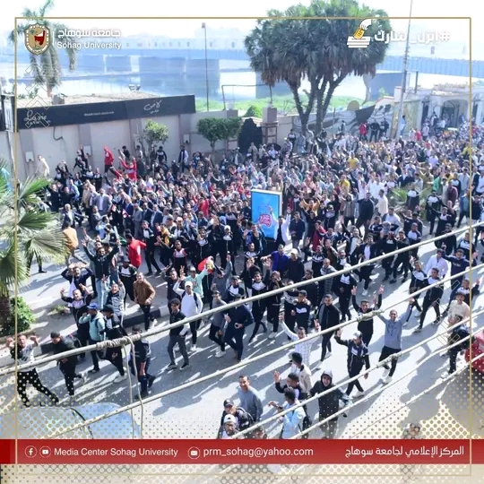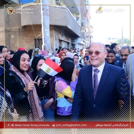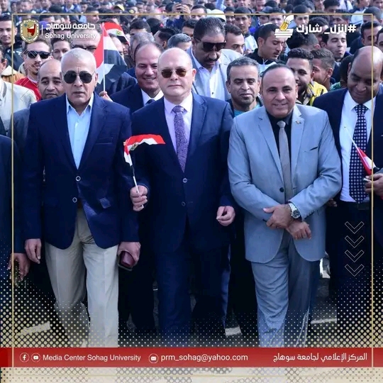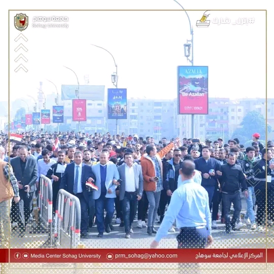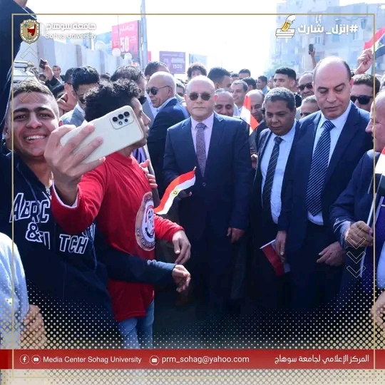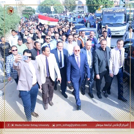تقدم الدكتور حسان النعماني رئيس جامعة سوهاج، مسيرة طلابية حاشدة غير مسبوقة العدد، جابت أرجاء المحافظة لدعم الانتخابات الرئاسية ٢٠٢٤، وتعزيز الديمقراطية النابعة من اختيار الشعب لمن يمثله فى تلك اللحظة الفارقة فى تاريخ مصر، مرددين هتافات وطنية قوية تحت شعار (انزل شارك.. صوتك أمانة)، ليكون هذا العرس الديمقراطي خير شاهد على التحول الحقيقي للمصريين وما يتمتعوا به من حرية كاملة وترابط شعبي واضح، يضع مصر فى مكانتها الصحيحة والمعتادة بين دول العالم.
