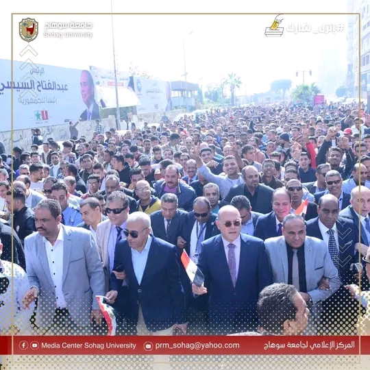 النعماني يتقدم مسيرة ضخمة وحاشدة تضم ٢٠ الف طالب وطالبة من منسوبي جامعة سوهاج إلى صناديق إقتراع الانتخابات الرئاسية ٢٠٢٤
