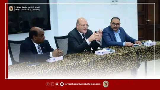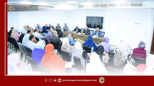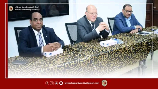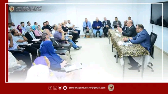 التقي الدكتور حسان النعماني رئيس جامعة سوهاج مع رؤساء الأقسام الاساسية والاكلينيكية ومنسقي المقررات الطبية المختلفة بكلية الطب البشري، وذلك لمناقشة آليات تحديث ومراجعة المحتوى العلمي للمناهج التي تدرس بكلية الطب البشري وفقاً لمحددات الهيئة القومية لدراسة الطب بجمهورية مصر العربية، بحضور الدكتور مجدي القاضي عميد الكلية والدكتور محمد نصر الدين حمدون وكيل الكلية لشئون التعليم والطلاب بالمبني التعليمي بمستشفى الطواري بمدينة سوهاج الجديدة.