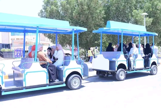 حيث تم تشغيل عدد 2 طفطف كل منهم يتكون من عربيتين، حيث تسع كل عربة عدد 30 طالب بإجمالي 120 طالب وطالبة.