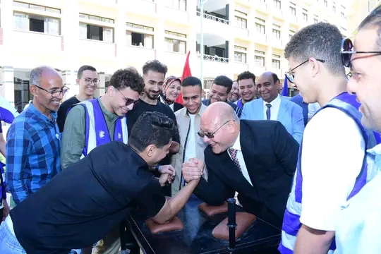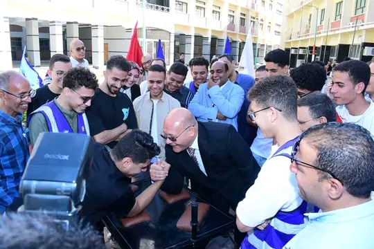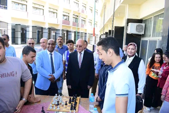 واضافت ايمان الفولي مدير إدارة رعاية الشباب بالكلية.أن رئيس الجامعة تفقد مقرات عدد من المسابقات الطلابية التي تنظمها الإدارة ، والتى تضم أنشطة رياضية، ثقافية، اجتماعية، وعلمية، حيث شارك رئيس الجامعة الطلاب فى ممارسة بعض الألعاب الرياضية مثل ألعاب تنس الطاولة، شد الحبل، الشطرنج، وألعاب القوي.