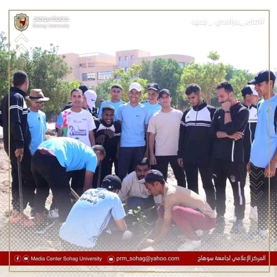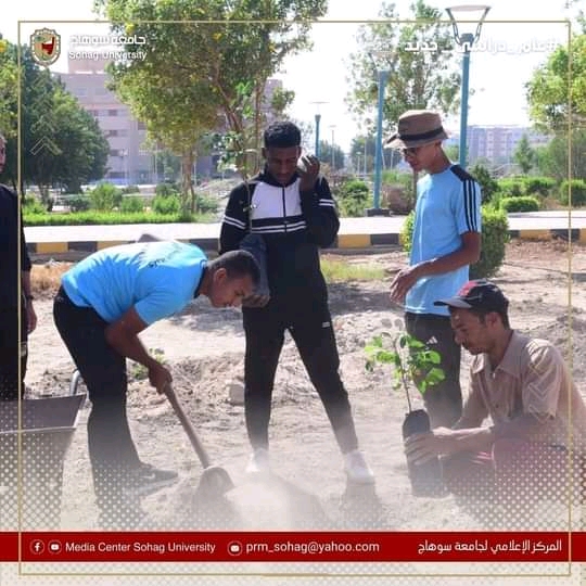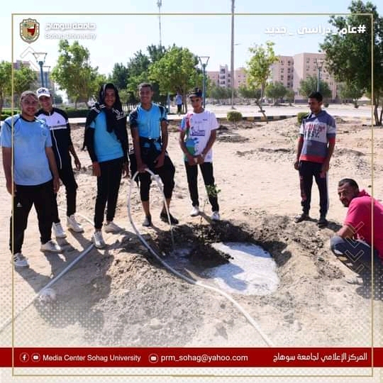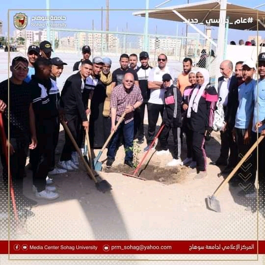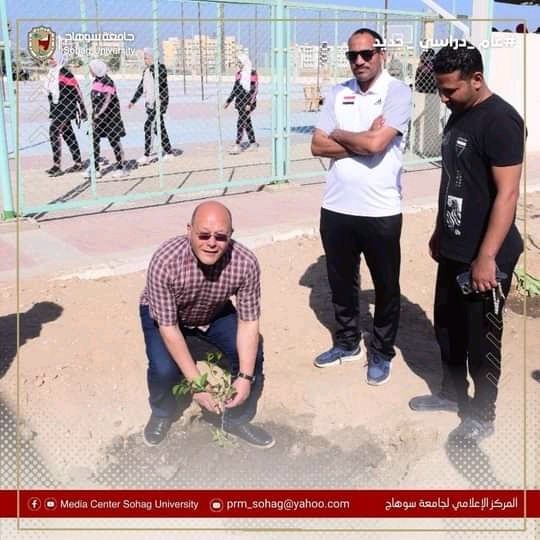 شارك الدكتور حسان النعماني رئيس جامعة سوهاج في انطلاق فعاليات الفوج الرابع لطلاب معسكر كلية التربية الرياضية لخدمة وتنمية المجتمع، والذي يستهدف زراعة ١٠٠٠ شجره مثمرة داخل مقر الجامعة الجديدة بمدينة سوهاج الجديدة، وذلك ضمن المبادرة الرئاسية التي أطلقها فخامة الرئيس السيسي لزراعة ١٠٠ مليون شجرة مثمرة، يصاحبه الدكتور أحمد عبد الله القائم بعمل عميد الكلية واللواء طارق حافظ مدير الأمن الجامعي وعدد من أعضاء هيئة التدريس بالكلية.