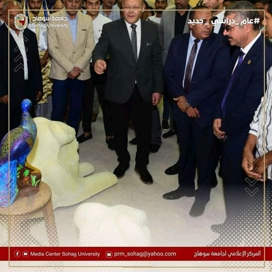 تفقد الدكتور حسان النعماني رئيس جامعة سوهاج المشاريع الطلابية الخاصة بطلاب قسم الترميم بكلية الاثار لاستنساخ بعض التماثيل والقطع الجصية، وذلك داخل معمل الترميم بمقر الجامعة الجديدة.