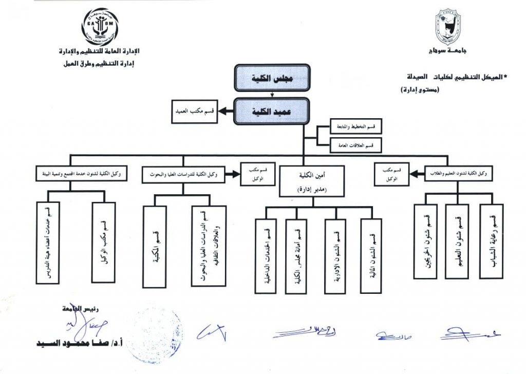 الهيكل التنظمي لكليات الصيدلة – الحقوق .
