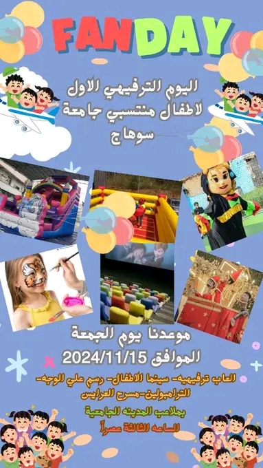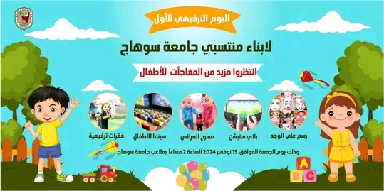 منتسبي جامعة سوهاج.. ندعوكم لمشاركة اطفالكم باليوم الترفيهي الأول.. انتظروا مزيد من المفاجآت