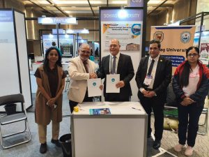 وقال النعماني انه علي هامش مشاركة الجامعة بملتقي التعليم العالي بالعاصمة الكوريه سيول تم توقيع بروتوكول تعاون مع *جامعة DPU (Dr. D. Y. Patil Vidyapeeth) بدولة الهند*