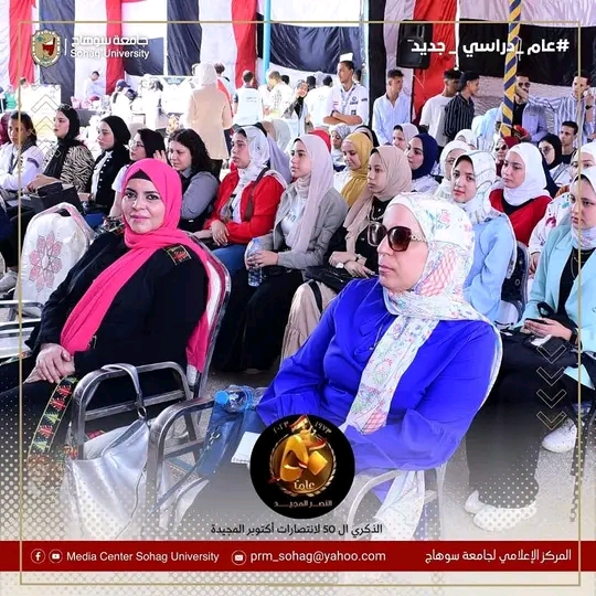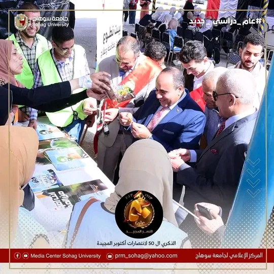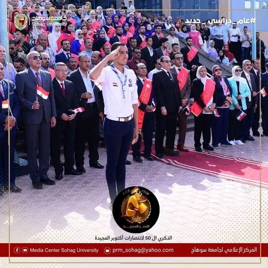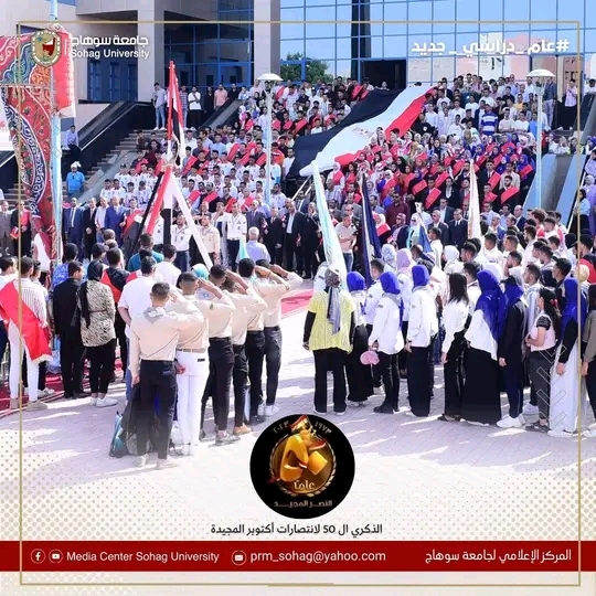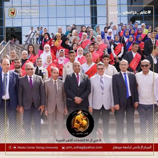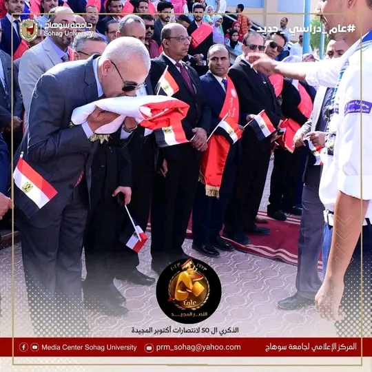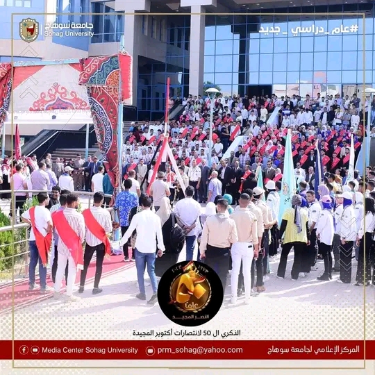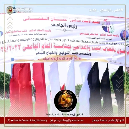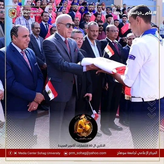 نظمت جامعة سوهاج بانوراما استقبال الطلاب الجدد والقدامي للعام الدراسي ٢٠٢٣-٢٠٢٤، والتي بدأت بمراسم رفع وأداء تحية العلم وعزف السلام الوطني، بالحرم الجامعي الجديد، بحضور كلاً من الدكتور عبدالناصر يس نائب رئيس الجامعة لشئون التعليم والطلاب، الدكتور خالد عمران نائب رئيس الجامعة لشئون خدمة المجتمع وتنمية البيئة، المحاسب أشرف القاضي أمين عام الجامعة، ولفيف من عمداء الكليات وأعضاء هيئة التدريس والعاملين بالجامعة.