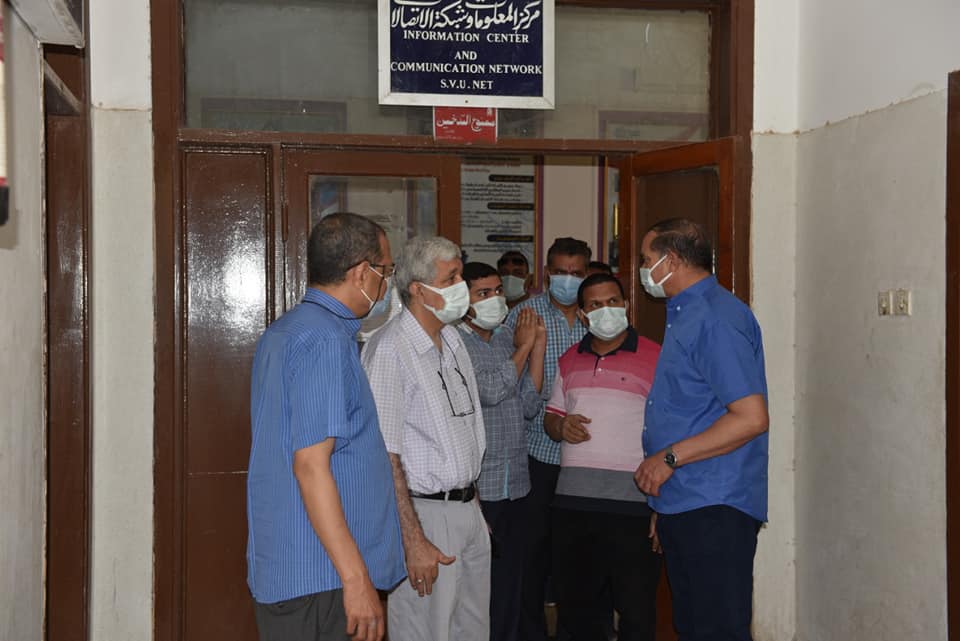 تفقد الدكتور احمد عزيز رئيس جامعة سوهاج، عصر اليوم مقر شبكة المعلومات بالجامعة، للوقوف على المتطلبات الخاصة بتطوير البنية التحتية والرقمية بالمقرين الجديد والقديم لخدمة العملية التعليمية بما يتلاءم مع ظاهرة التحول الرقمي والتعليم الالكتروني الحديث، يرافقه الدكتور احمد سليمان نائب رئيس الجامعة والمشرف على مركز الخدمات الالكترونية والمعرفية، والدكتور مصطفى عبدالخالق نائب رئيس الجامعة لخدمة المجتمع والبيئة، والمحاسب أشرف القاضي القائم بعمل أمين عام الجامعة، والدكتور محمد حشمت مدير البوابة الالكترونية بالجامعة، ولفيف من مهندسي شبكة المعلومات بالجامعة.