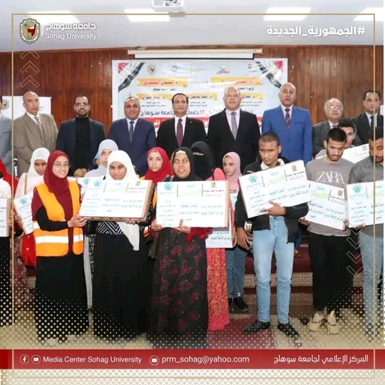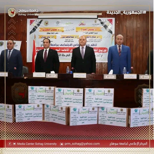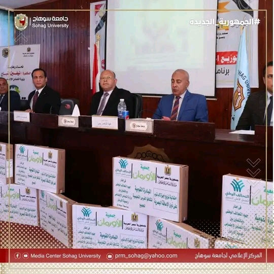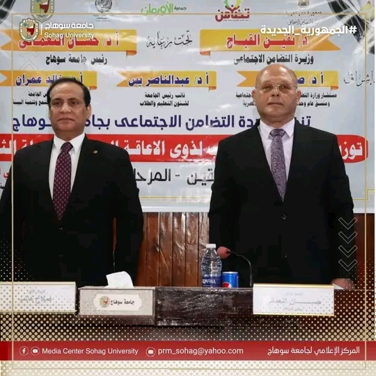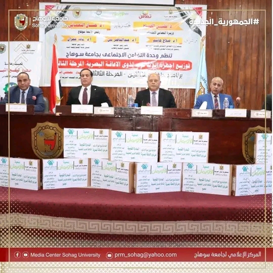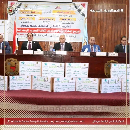 شهد الدكتور حسان النعماني رئيس جامعة سوهاج احتفالية توزيع عدد ٢٢ جهاز لاب توب ناطق للطلاب فاقدي البصر، والتي نظمتها وحدة التضامن الاجتماعي بالجامعة، بالتعاون مع كلاً من جمعية الأورمان، الجمعية الشرعية الإسلامية، وذلك في إطار المبادرة القومية لتكافؤ الفرص التعليمية و جهود التحالف الوطني، و التي أطلقتها وزارة التضامن الاجتماعي، بحضور الدكتور صلاح هاشم مستشار وزارة التضامن الإجتماعي للسياسة الإجتماعية ومنسق عام وحدات التضامن بالجامعة المصرية، الدكتور عبدالناصر يس و الدكتور خالد عمران نواب رئيس الجامعة، محمد سعد مدير فرع جمعية الأورمان بسوهاج، أعضاء هيئة التدريس والطلاب، وذلك بالقاعة الزجاجية بالحرم الجامعي القديم.