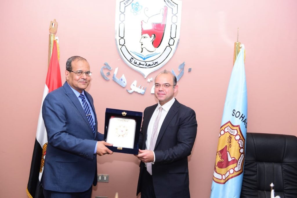 وقع الدكتور مصطفي عبدالخالق رئيس جامعة سوهاج مع الدكتور محمد فريد صالح رئيس مجلس إدارة البورصة المصرية بروتوكول تعاون بين المؤسستين