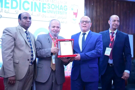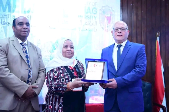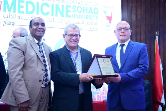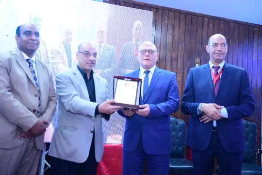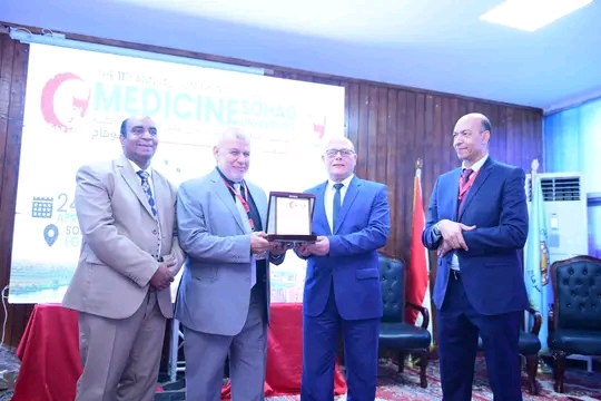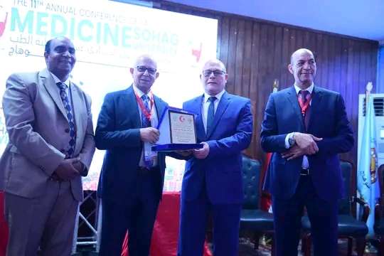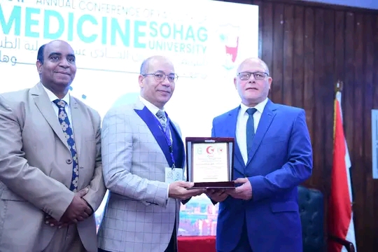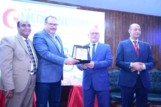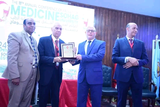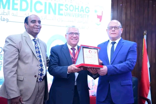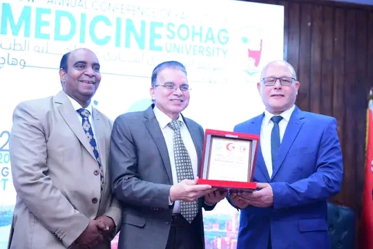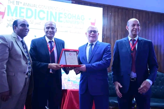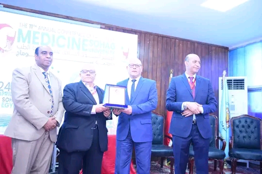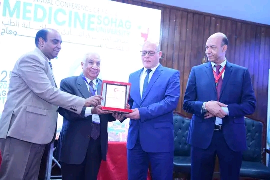 كما اهدي الدكتور مجدي القاضي عميد الكلية درع الكليه للدكتور حسان النعماني رئيس الجامعة تقديراً لدعمه المستمر وتلبيه كافه احتياجات ومتطلبات الكلية والمستشفيات الجامعية.