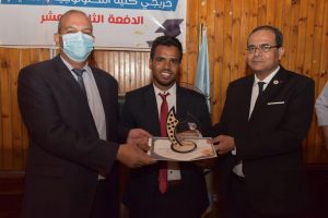 تحديات سوق العمل، لافتاً إلى أنه تم اليوم تخريج ١١٤ طالب وطالبة من أبناء الكلية، متمنياً لهم مزيد من التقدم والنجاح، مع مواصلة التعلم والبحث لرفع كفاءتهم و أن يكون الطموح والتميز ضمن أهدافهم المستقبلية.