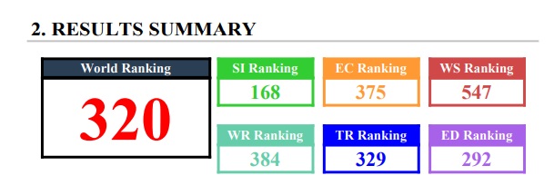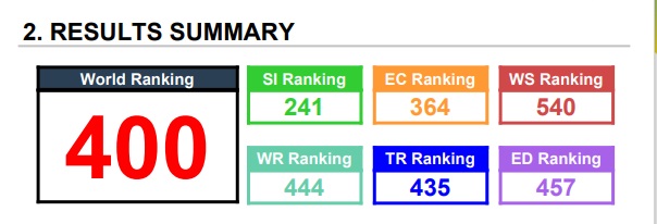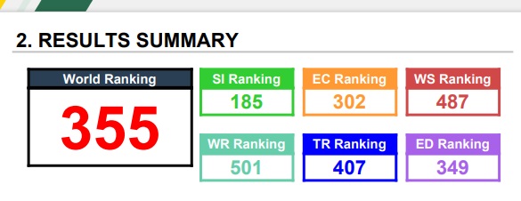استند التصنيف في ترتيب الجامعات على مدى تطبيق معايير المحافظة على البيئة ولقد صممت المؤشرات والاوزان الخاصة بهذا التصنيف لتكون خالية من التحيز قدر اإلمكان. إن عملية جمع البيانات وتقديمها تعتبر بسيطة نسبيًا وتتطلب وقتًا ليس بالكثير من قبل القائمين على التصنيف.