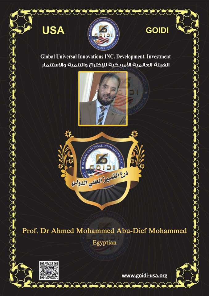تهئنة لمنح أ.د/ أحمد محمد ابو ضيف درع التميز العلمي الدولي من الهيئة العالمية الأمريكية للاختراع والتنمية والاستثمار (USA GOIDI)