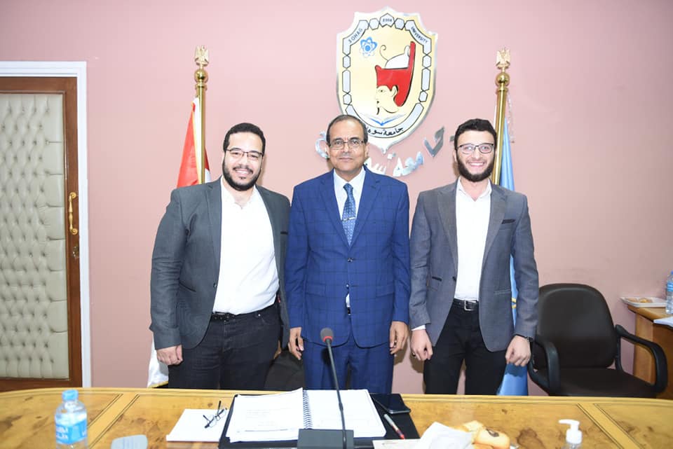 استقبل الدكتور مصطفي عبد الخالق رئيس جامعة سوهاج، ممثلي هيئة TIEC التابعة لوزارة الاتصالات، والمكونة من المهندس محمود قاسم مسئول البرامج، وأحمد عمر مسئول التشغيل بالهيئة، وذلك خلال فعاليات جلسة مجلس الجامعة رقم (١٨٢)، بحضور نواب رئيس الجامعة، وأمين عام الجامعة و عمداء الكليات.