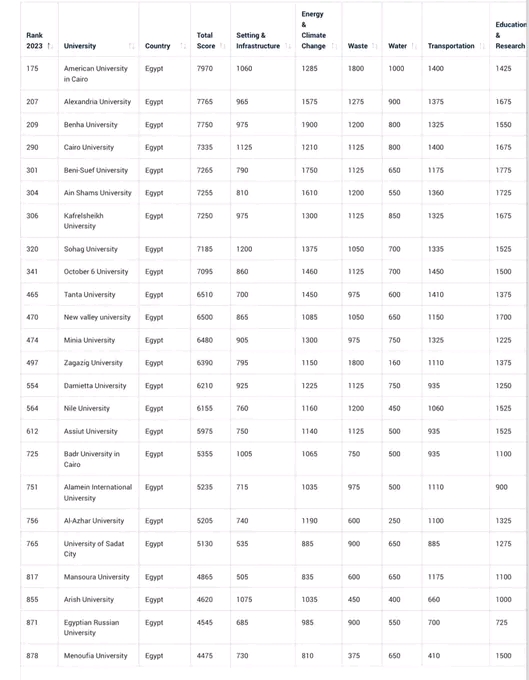 وقال الدكتور خالد عمران نائب رئيس الجامعة لشئون خدمة المجتمع وتنمية البيئة، أن المنافسة هذا العام كانت قوية لزيادة عدد الجامعات العالمية والمصرية المشاركة، مضيفاً أن تقدم الجامعة في الترتيب يرجع إلى تطبيقها العديد من برامج وأنشطة الاستدامة التي تعتمد على نشر مفاهيمها بين منسوبيها، و زيادة الوعي البيئي، والاستخدام الأمثل للموارد لكي تستمر في كونها جامعة صديقة للبيئة، وذلك في إطار مبادرة رئيس الجمهورية “اتحضر للأخضر” و رؤية مصر 2030 للتنمية المستدامة، وأيضاً الإستراتيجية الوطنية للتغيرات المناخية ٢٠٥٠، ومبادرة 100 مليون شجرة.