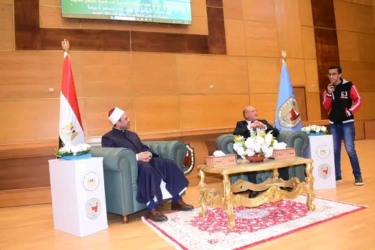 وفي كلمته هنأ رئيس الجامعة القيادة السياسية وعلى رأسها الرئيس عبدالفتاح السيسي، والحضور وجميع منسوبي الجامعة بمناسبة قرب حلول شهر رمضان المبارك أعاده الله على الأمة الإسلامية بالخير واليمن والبركات والأمن والأمان والإستقرار، مُرحباً بضيوف الجامعة من الأزهر الشريف، قائلاً ونحن نستقبل شهر رمضان لابد من تهذيب نفوسنا وتقوية عقيدتنا والاستفادة من روحانياته ونفحاته، من خلال إحياء القيم التي جاء بها الإسلام، وتفعيل المبادئ المثالية لتحقيق استخلاف الله للإنسان في الأرض، كما جاء في القرآن الكريم، وذلك بتقوية روح الانتماء الديني والوطني والابتعاد عن كل ما يسيء إلى الإسلام والوطن، وذلك من خلال توعية المجتمع وخاصة الشباب لتجنب تلك المحاولات الخارجية لإحتلال عقول الشباب وتعطيل حركة التقدم والتنمية تحت شعار الدين والفكر المتطرف وغرس اليأس في نفوسهم وعقولهم، لذا تحرص الجامعة بشكل دائم على التواصل مع منسوبيها وتنظيم الفعاليات التي من شأنها دحض وإحباط تلك المحاولات وتدمير الأفكار الهدامة والتمسك بالقيم والمبادئ الدينية السليمة.