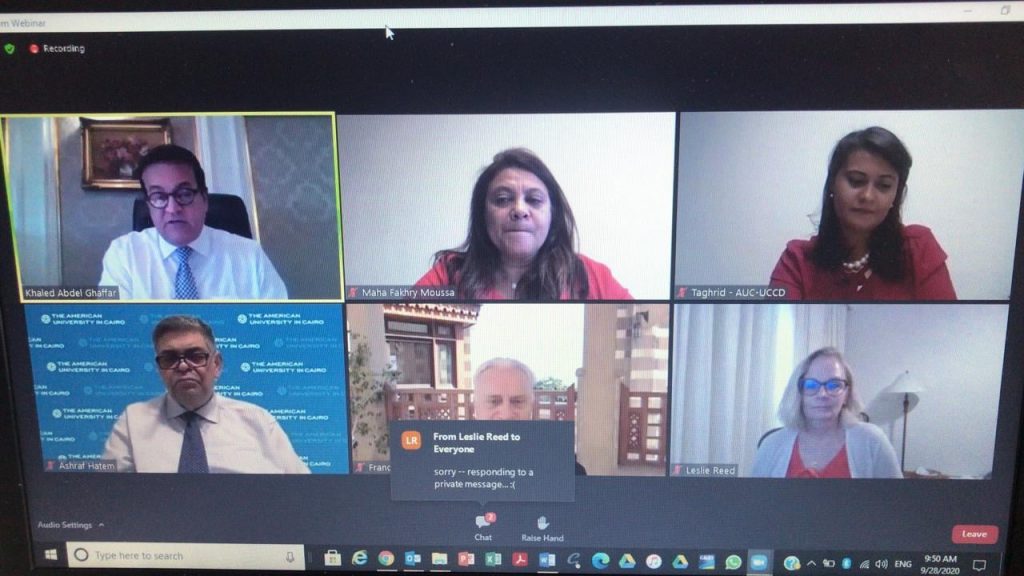 شارك الدكتور أحمد عزيز رئيس جامعة سوهاج اليوم في فاعليات افتتاح الملتقي الإفتراضي الأول للتوظيف للجامعات UCCD 2020، لطلاب وخريجى الجامعات المصرية، وذلك عبر تقنية الفيديو كونفرانس، والذي تنظمه الجامعة الأمريكية، بتمويل من الوكالة الأمريكية للتنمية الدولية، تحت رعاية الدكتور خالد عبد الغفار وزير التعليم العالي والبحث العلمي، و بحضور الدكتور فرانسيس ريتشاردونى رئيس الجامعة الأمريكية، وليزلى ريد مديرة الوكالة الأمريكية للتنمية الدولية و الدكتور أشرف حاتم مستشار الجامعة.