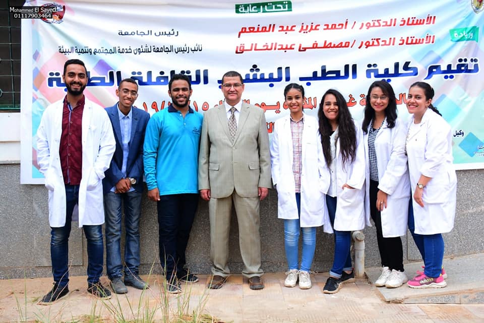 وقال الدكتور مصطفي عبد الخالق نائب رئيس الجامعة لخدمة المجتمع وتنمية البيئة، أن القافلة تأتى ضمن أنشطة الخطة الخمسية المعتمدة لخدمة المجتمع و التى أقرها مجلس الجامعة، ووجه بتنفيذها رئيس الجامعة، بهدف مد يد العون ومساعدة المجتمع، وتقديم خدمة طبية علاجية توعوية متميزة.