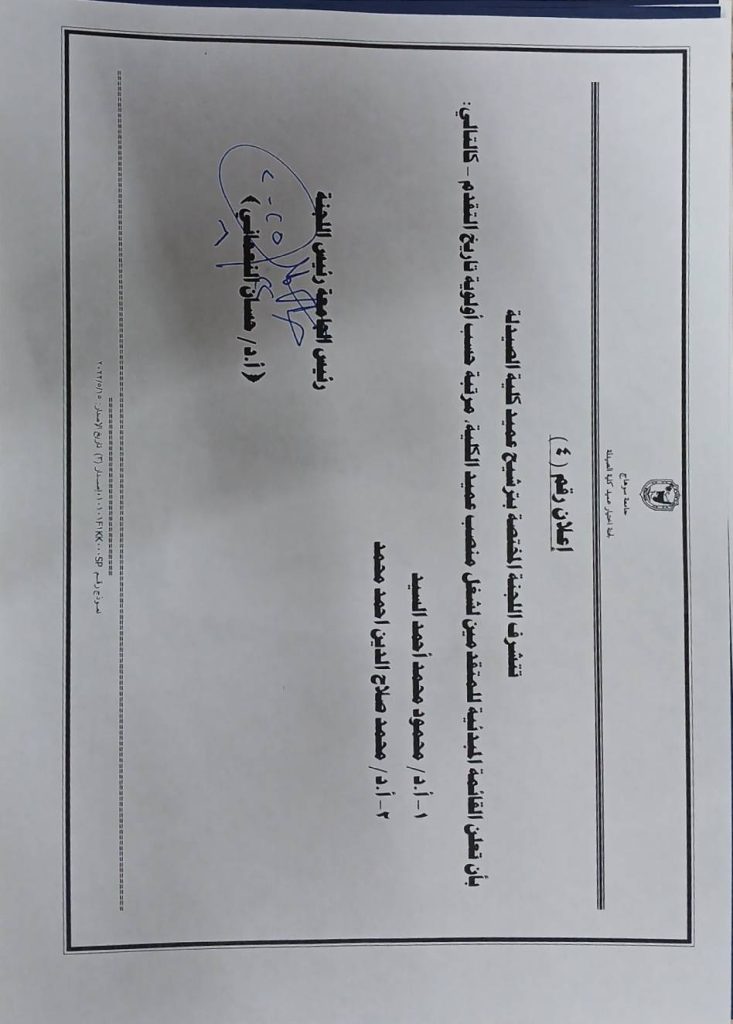 اعلنت اللجنة المختصة بترشيح عمداء كليات ومعاهد جامعة سوهاج، برئاسة الدكتور حسان النعماني رئيس الجامعة، القائمة النهائية للمتقدمين لشغل منصب عميد كلية الصيدلة وضمت كلا من الدكتور محمود محمد احمد، والدكتور محمد صلاح الدين، وبالنسبه لكلية الألسن ضمت كلا من الدكتور ناصر السيد محمود و الدكتور صبري توفيق همام.