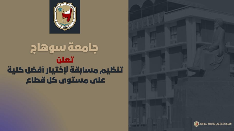 أعلن الدكتور مصطفى عبدالخالق رئيس جامعة سوهاج، عن تنظيم مسابقة لإختيار أفضل كلية على مستوى كل قطاع خلال الفترة من ٢٠٢١ إلى ٢٠٢٣م، والتى تشمل قطاعات شئون التعليم والطلاب، خدمة المجتمع وتنمية البيئة، وشئون الدراسات العليا والبحوث.