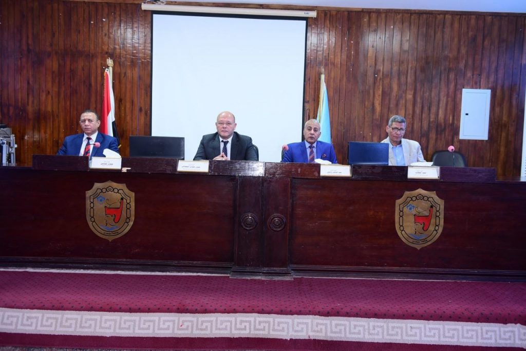 واستعرض الدكتور حمدي حسانين برامج و أنشطة الاستدامة التي تنفذها الجامعة لكي تصبح جامعة صديقة للبيئة وذلك في إطار رؤية مصر 2030 للتنمية المستدامة، مثمناً دور رئيس الجامعة بتطوير العديد من البرامج التي تعتمد على نشر الوعي البيئي والاستخدام الأمثل للموارد والتي تتواكب مع مبادرة الرئيس عبد الفتاح السيسي رئيس الجمهورية (اتحضر للأخضر) والتي أطلقتها الدكتورة ياسمين فؤاد وزيرة شئون البيئة، مؤكداً ان الجامعة وضعت في مقدمة اهتماماتها أن يصبح حرمها حرماً نظيفاً ومحافظاً على معايير الاستدامة والبيئة الخضراء مثل المباني المستدامة، التقليل من استخدام وسائل النقل الملوثة للبيئة، ترشيد استهالك الطاقة والمياه ،الحفاظ على الغطاء األخضر، تخفيض انبعاثات الكربون، الحد من الضوضاء، التخلص اآلمن من النفايات، هذا بالاضافة الي التحول الرقمي لتقليل استخدام الورق والتوسع في مشروعات الطاقة الجديدة والمتجددة. كذلك تدعم الجامعة وتشجع الابحاث العلمية والمشاريع البحثية المتعلقة بالاستدامة و تنظم أنشطة لزيادة الوعي البيئي بين الطالب وأعضاء هيئة التدريس، والعاملين بالجامعة مما يجعلها منارة لبث مفاهيم االستدامة للمجتمع المحيط.