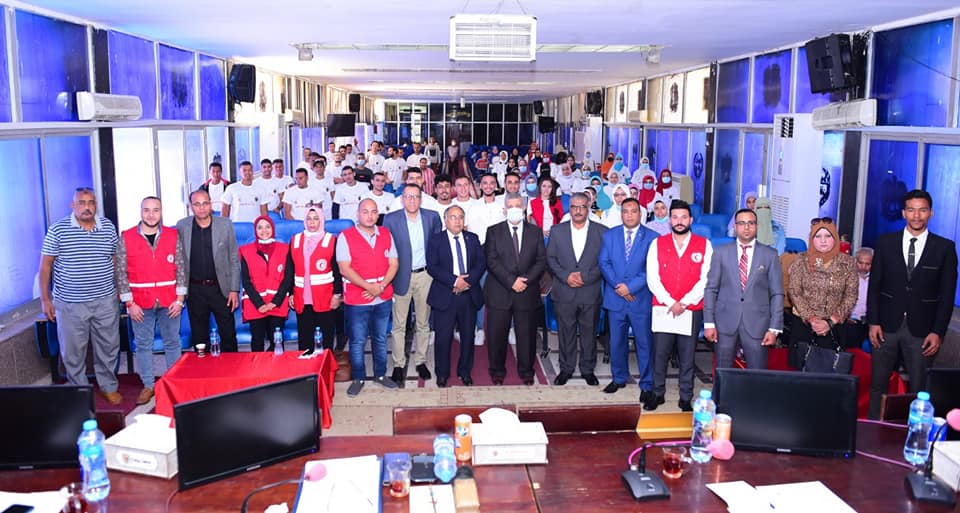 الدكتور رأفت عبد الرحمن وكيل وزارة التضامن الاجتماعي بالمحافظة، محمود جمال منسق التطوع بالجامعات بإدارة الشباب والتنمية، الدكتور محمد حسن وكيل كلية التجارة لشئون خدمة المجتمع، ونسمة علاء مدرب الإسعافات الأولية بالهلال الأحمر المصري.