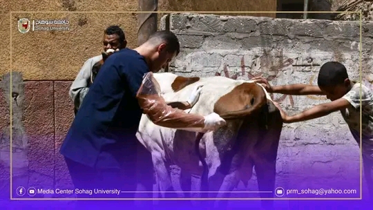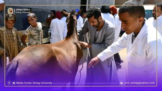جامعة سوهاج تواصل تنفيذ قوافلها البيطرية بفحص وعلاج ٥٥٠ حالة بقرية مزاته شرق بمركز دار السلام