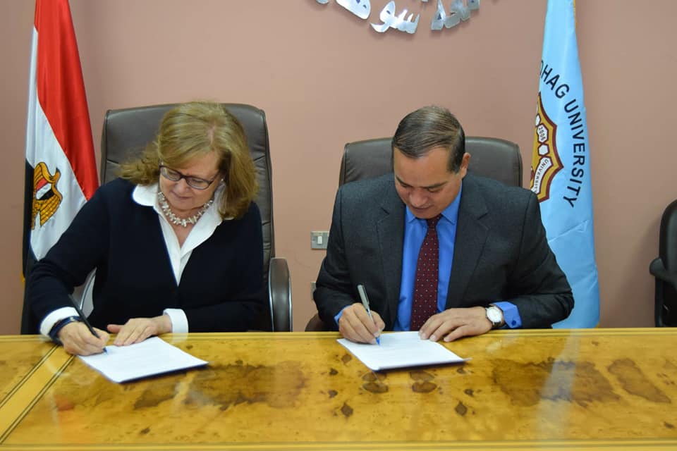 وقع الدكتور احمد عزيز عبد المنعم رئيس جامعة سوهاج، مع كريستينا بيتاسي ممثل منظمه اليونيدو برتوكول تعاون بين الجامعة ومنظمة اليونيدو “مشروع حياة ٢” لانشاء صوبه مكيفة لانتاج شتلات الخضر المطعومه، وذلك لتغطيه احتياجات المزارعين في الزراعات المحمية في اقليم جنوب الصعيد.