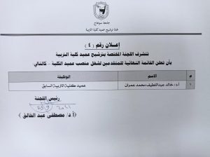 أعلنت اللجنة المشرفة على انتخابات كلية التربية بجامعة سوهاج، برئاسة الدكتور مصطفي عبد الخالق القائم بأعمال رئيس الجامعة، عن الكشف النهائي لأسماء المرشحين المتقدمين لمنصب العميد، وهو الدكتور خالد عبد اللطيف محمد عمران عميد الكلية السابق.
