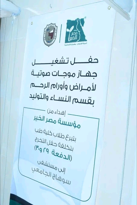 خريجي دفعتي ٢٩ و٣٠ طب بشري سوهاج يتبرعون بجهاز موجات صوتية لمستشفى الجامعة بالتعاون مع مؤسسة مصر الخير ضمن مبادرة بداية