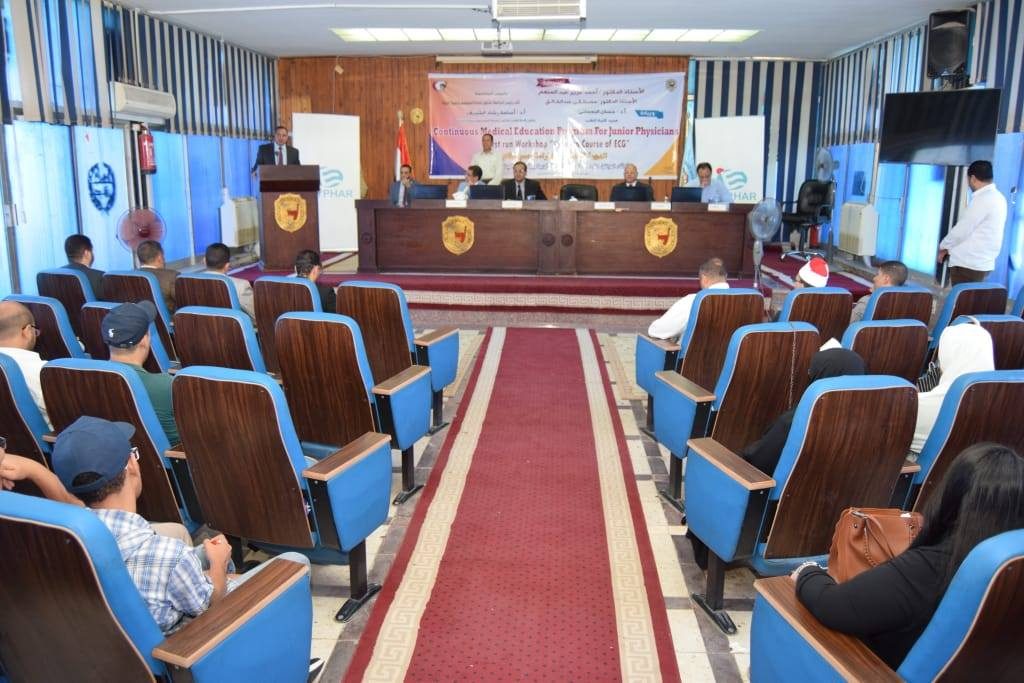 Prof Ahmed Aziz, the president of the university, attended the events of the continuous medical education project which started with a training course about ECG lectured by Dr Alaa Ghalib, lecturer of heart diseases and internal medicine department.