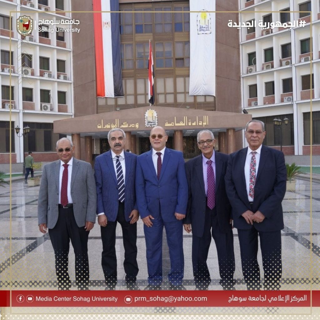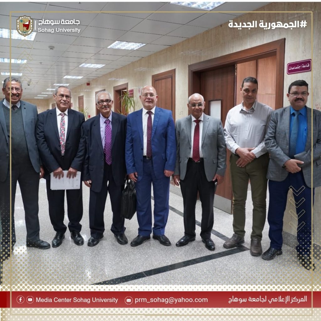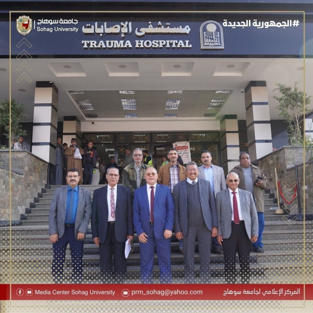 رئيس جامعة سوهاج مناقشاً برسالة دكتوراة بمستشفي الإصابات بجامعة أسيوط