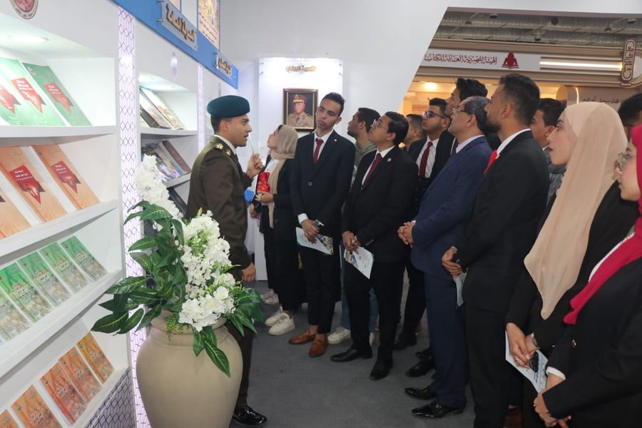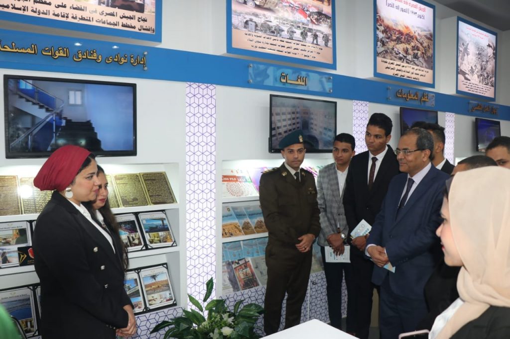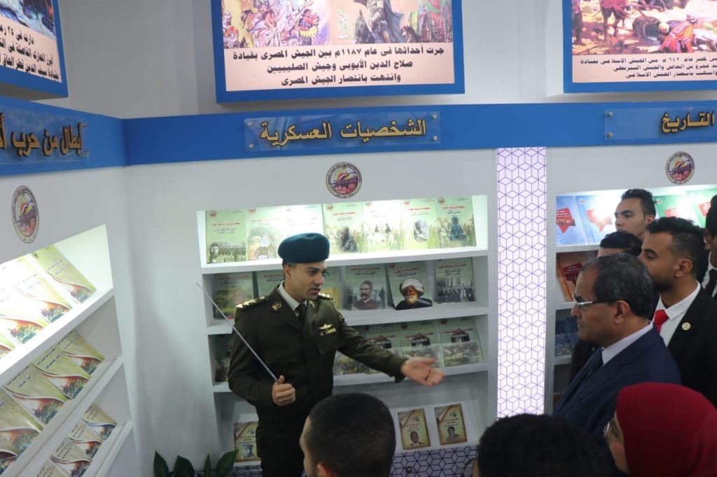 وأوضح رئيس الجامعة انه خلال زيارة الجناح الخاص بوزارة الدفاع تم تعريف الطلاب بالتراث العسكري، والشخصيات العسكرية المختلفة، وأبطال من حرب اكتوبر، الي جانب استعراض انجازات الجيش المصري خلال العصور الفرعونبة، الاسلامية وبالعصر الحديث، مشيداً بجهود الوزارة في نشر العلوم والمعرفة العسكرية والمدنية من خلال إصدارات القوات المسلحة التى تتناول التاريخ العسكرى المصرى العريق .