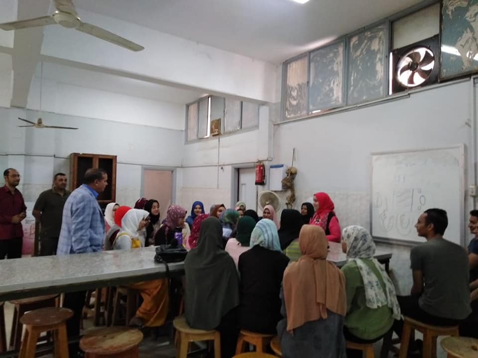 وأثناء الجولة ناقش رئيس الجامعة وعميد الكلية الطلاب حول متطلباتهم واحتياجاتهم ومدي الإمكانيات والأدوات التعليمية المتاحة بالمشرحة.