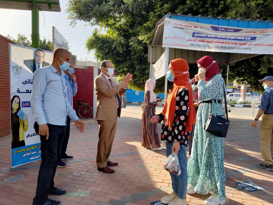 وخلال جولته نوه “عبدالخالق”، أنه بدءاً من شهر نوفمبر القادم، سوف يتم منع دخول أي فرد من بوابات الجامعة لم يتلقي لقاح كورونا، وذلك تنفيذًا لخطة الدولة فى مواجهة تفشي الإصابة بالفيروس، مشدداََ على إستمرار إرتداء الكمامة الطبية لجميع المترددين على الجامعة، وتوقيع الكشف الحراري عليهم قبل الدخول من البوابات الرئيسية بمقري الجامعة.