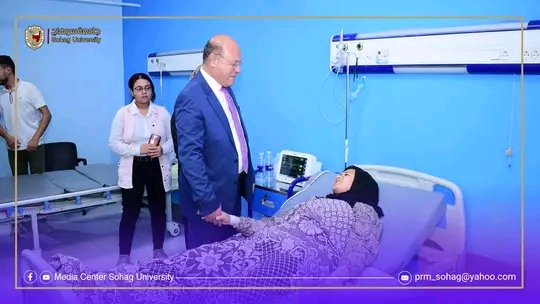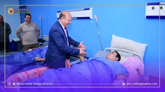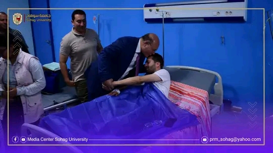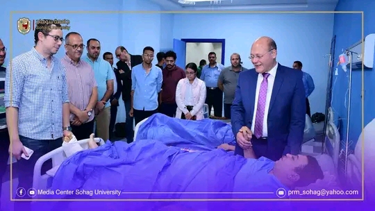 تابع الدكتور حسان النعماني رئيس جامعة سوهاج، اليوم الحالة الصحية لوفد جامعة المنصورة، والذي تعرض بالأمس لحادث إنقلاب سيارة ميكروباص على الطريق الصحراوى الشرقى دائرة مركز أخميم شرقى سوهاج، وذلك بالمستشفي الجامعي الجديد، يرافقه الدكتور عبد الناصر يس نائب رئيس الجامعة لشئون التعليم والطلاب والدكتور مصطفي هريدي مدير المستشفي الجامعي الجديد .