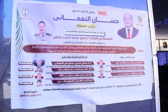 وأكد الدكتور حسان النعماني أن موضوع الرسالة يُعد من الموضوعات التطبيقية الهامة التي تربط بين العلم والممارسة في المجال الرياضي، مشيرًا إلى أن الجامعة تولي اهتمامًا بالغًا بدعم البحث العلمي في كافة المجالات وتسعى دائمًا لتوفير البيئة المناسبة التي تشجع الباحثين على الابتكار وتقديم أبحاث تواكب احتياجات المجتمع.