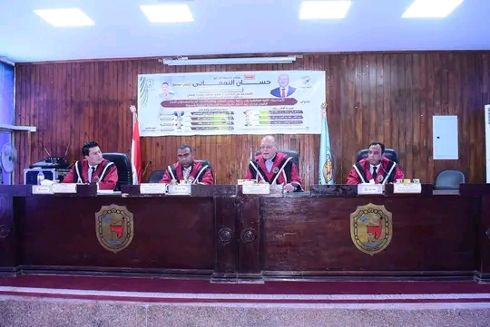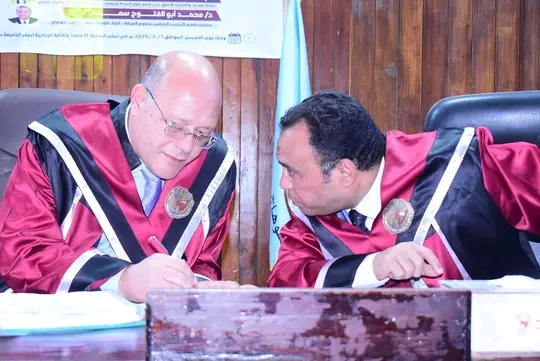 تشكلت لجنة المناقشة والحكم على الرسالة برئاسة رئيس الجامعة ، وعضوية كل من الدكتور أيمن مسلم أستاذ ووكيل كلية علوم الرياضة بجامعة الوادي الجديد” مناقشًا خارجيًا”، والدكتور هاني جعفر أستاذ ورئيس قسم التدريب الرياضي بالكلية “مشرفًاومناقشاً”، والدكتور أسامة العزازي الأستاذ المساعد بقسم علوم الصحة الرياضية “مشرفاً ومناقشاً”، والدكتور محمد أبوالفتوح سعد المدرس بقسم التدريب الرياضي “مشرفاً”