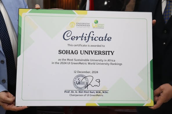 تسلم الدكتور حسان النعماني رئيس جامعة سوهاج، شهادة المركز الأول على مستوى الجامعات المصرية والأفريقية فى التصنيف الدولى للجامعات المستدامة GreenMetric لعام 2024، متمنياً مزيداً من الانجازات والنجاحات المتتالية في مجال التصنيفات العالمية.
