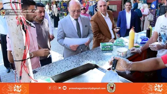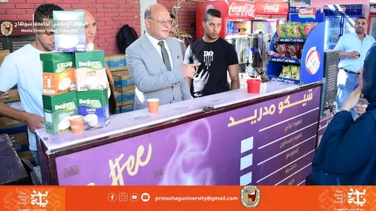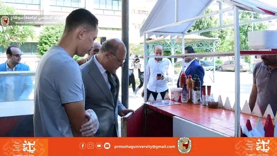 رئيس جامعة سوهاج يتفقد منافذ بيع المنتجات الغذائية ويطمئن على مدى تطبيق معايير الصحة والسلامة داخل الكافيتريات الجامعية