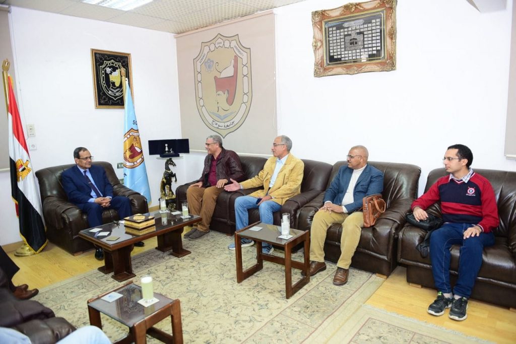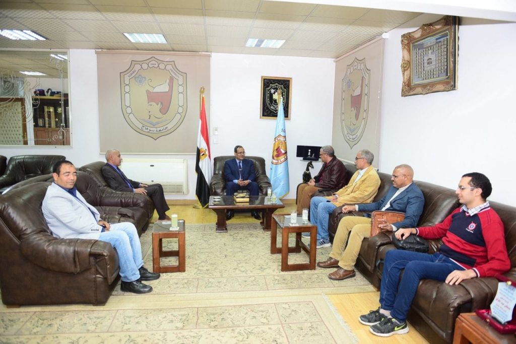 استقبل الدكتور مصطفى عبدالخالق رئيس جامعة سوهاج، اللجنة المُشكلة من قبل الدكتور مصطفى وزيري الأمين العام للمجلس الأعلى للآثار، وذلك لمعاينة وحصر القطع الموجودة بمتحف كلية الآثار بالجامعة، لإعداد تقرير مُفصل بالقطع الأثرية الموجودة بالمتحف، تمهيداً لعرضها على اللجنة الدائمة بالمجلس الأعلى للآثار، ثم تسجيلها بالإدارة العامة للحيازة والمقتنيات الأثرية بالمجلس، وذلك بحضور كلاً من الدكتور عبد الناصر ياسين نائب رئيس الجامعة لشئون التعليم والطلاب والمشرف على عمادة كلية الآثار، ومحمود خليل مدير عام الحيازة والمقتنيات الأثرية بالمجلس الأعلى للآثار، الدكتور محمود أحمد زرازير رئيس اللجنة المشكلة من كلية الآثار بالجامعة، وذلك بمكتب رئيس الجامعة بالحرم الجامعي القديم.